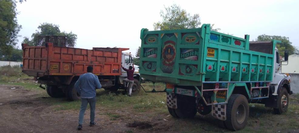 दोन ट्रॅक्टर,दोन ट्रकसह मुद्देमाल जप्त.